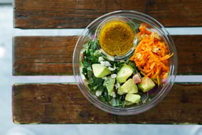 国産のケール(農薬・除草剤・化学肥料は不使用)をベースにキヌアなどのスーパーフードや豆など10種類以上の素材がたっぷり入ったスペシャルサラダ。